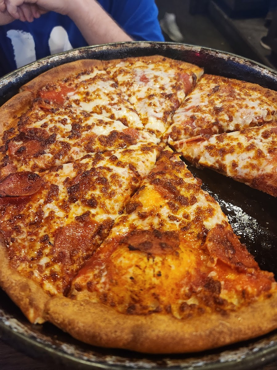 Wow!! We travel a lot and every time we visit some where new we have to try their local pizza. We love thick pizza so we got the pan crust and it was phenomenal!! The cheesy bread was out of this world too!!! 5 Stars all the way.